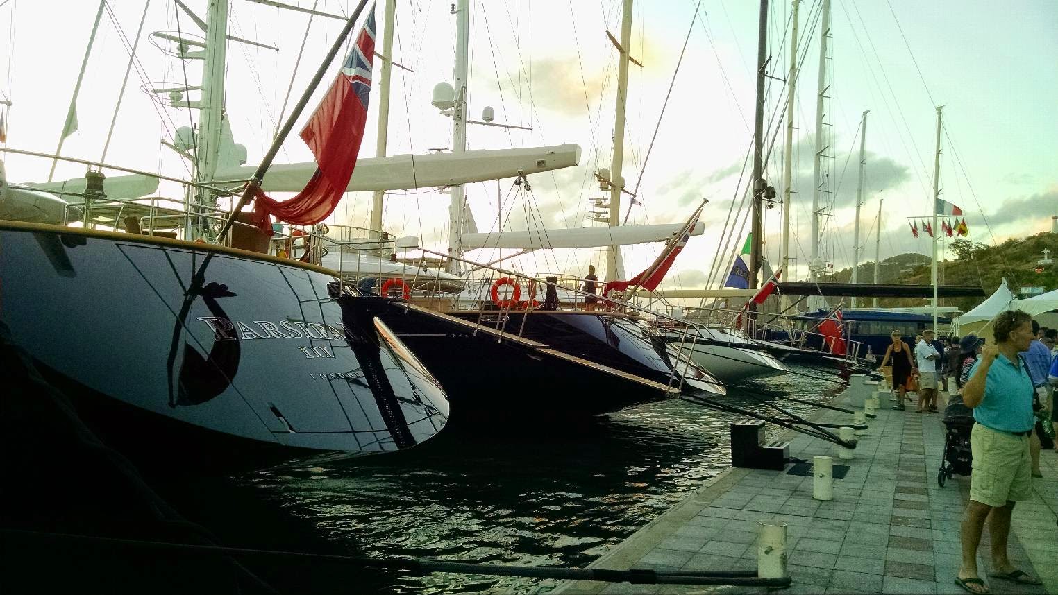 As mentioned earlier, we sailed from St Martin to St Barts to see the St Barts Bucket Regatta. (We've since sailed to Saba and then back to St. Martin. More on that later). The Bucket Regatta is a "congenial" race specifically for boats over 31 meters (102 feet) and by invitation only. These are big sailboats. One of them, Lady B, had 36 crew plus 36 guests for every race.